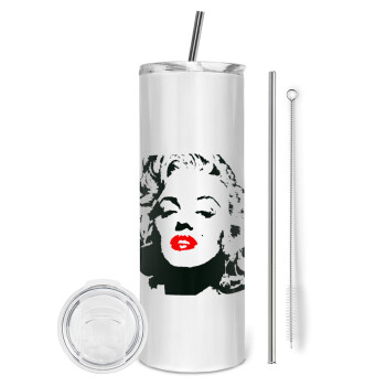 Merilin, Tumbler ποτήρι θερμό από ανοξείδωτο ατσάλι 600ml, με μεταλλικό καλαμάκι & βούρτσα καθαρισμού