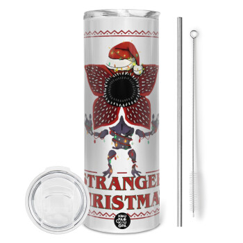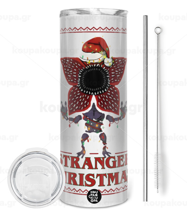 Stranger Things Christmas, Tumbler ποτήρι θερμό από ανοξείδωτο ατσάλι 600ml, με μεταλλικό καλαμάκι & βούρτσα καθαρισμού