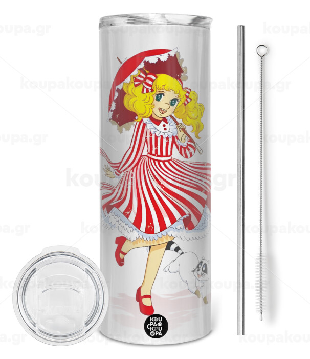Candy, Tumbler ποτήρι θερμό από ανοξείδωτο ατσάλι 600ml, με μεταλλικό καλαμάκι & βούρτσα καθαρισμού