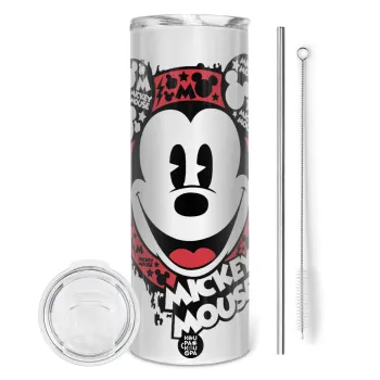 Mickey Mouse, Tumbler ποτήρι θερμό από ανοξείδωτο ατσάλι 600ml, με μεταλλικό καλαμάκι & βούρτσα καθαρισμού