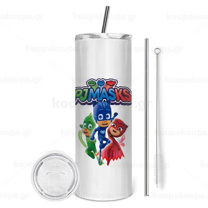 PJ masks, Tumbler ποτήρι θερμό από ανοξείδωτο ατσάλι 600ml, με μεταλλικό καλαμάκι & βούρτσα καθαρισμού
