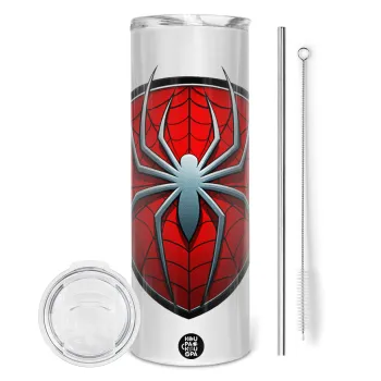 Spider-man, Tumbler ποτήρι θερμό από ανοξείδωτο ατσάλι 600ml, με μεταλλικό καλαμάκι & βούρτσα καθαρισμού