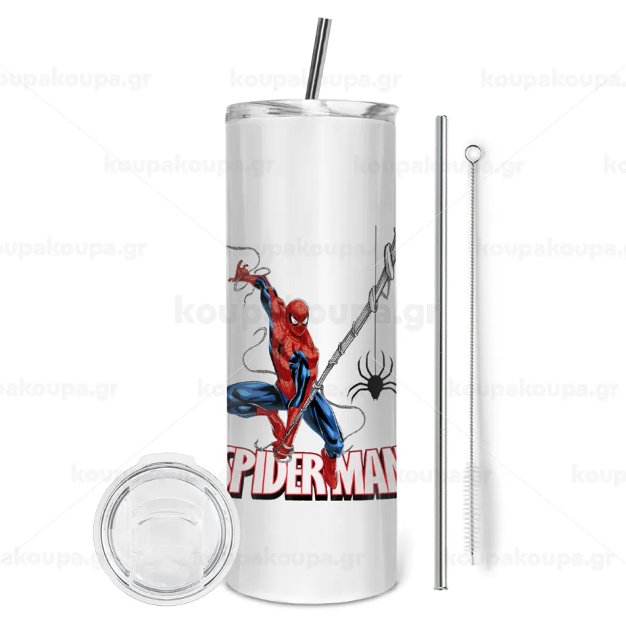 Spiderman fly, Tumbler ποτήρι θερμό από ανοξείδωτο ατσάλι 600ml, με μεταλλικό καλαμάκι & βούρτσα καθαρισμού