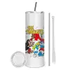 Τα στρουμφάκια, Tumbler ποτήρι θερμό από ανοξείδωτο ατσάλι 600ml, με μεταλλικό καλαμάκι & βούρτσα καθαρισμού