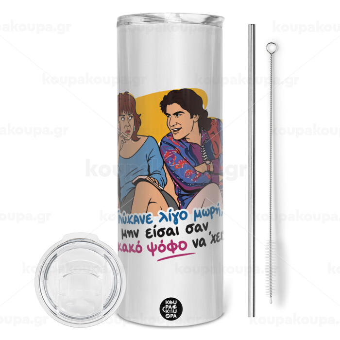 Γλύκανε λίγο, Tumbler ποτήρι θερμό από ανοξείδωτο ατσάλι 600ml, με μεταλλικό καλαμάκι & βούρτσα καθαρισμού