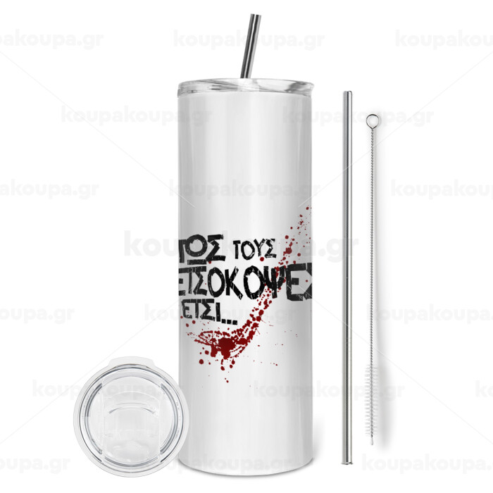 Πως τους πετσόκοψες έτσι..., Tumbler ποτήρι θερμό από ανοξείδωτο ατσάλι 600ml, με μεταλλικό καλαμάκι & βούρτσα καθαρισμού