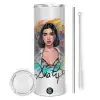 Dua lipa, Tumbler ποτήρι θερμό από ανοξείδωτο ατσάλι 600ml, με μεταλλικό καλαμάκι & βούρτσα καθαρισμού