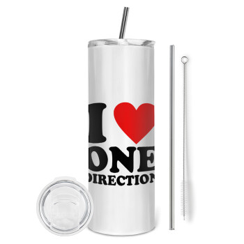 I Love, One Direction, Tumbler ποτήρι θερμό από ανοξείδωτο ατσάλι 600ml, με μεταλλικό καλαμάκι & βούρτσα καθαρισμού