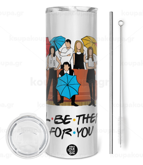 Friends cover, Tumbler ποτήρι θερμό από ανοξείδωτο ατσάλι 600ml, με μεταλλικό καλαμάκι & βούρτσα καθαρισμού