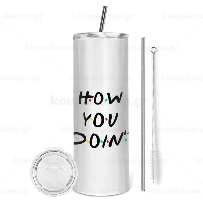 Friends How You Doin'?, Tumbler ποτήρι θερμό από ανοξείδωτο ατσάλι 600ml, με μεταλλικό καλαμάκι & βούρτσα καθαρισμού