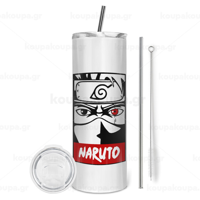 Naruto anime, Tumbler ποτήρι θερμό από ανοξείδωτο ατσάλι 600ml, με μεταλλικό καλαμάκι & βούρτσα καθαρισμού