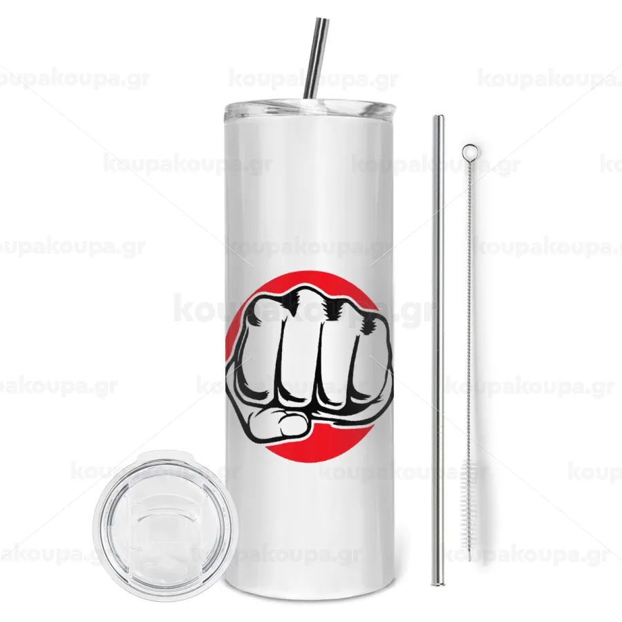Γροθιά (punch), Tumbler ποτήρι θερμό από ανοξείδωτο ατσάλι 600ml, με μεταλλικό καλαμάκι & βούρτσα καθαρισμού