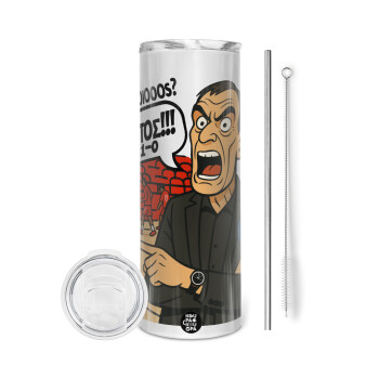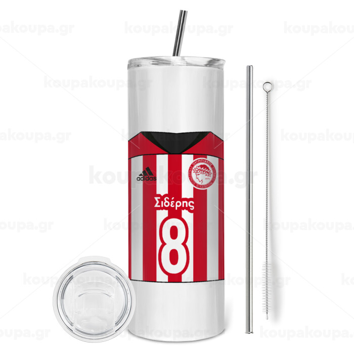 Ολυμπιακός εμφάνιση, Tumbler ποτήρι θερμό από ανοξείδωτο ατσάλι 600ml, με μεταλλικό καλαμάκι & βούρτσα καθαρισμού