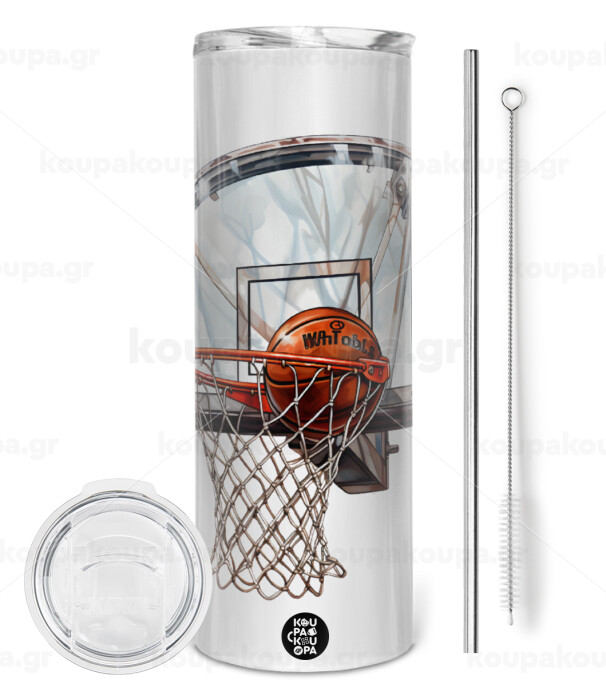 Basketball, Tumbler ποτήρι θερμό από ανοξείδωτο ατσάλι 600ml, με μεταλλικό καλαμάκι & βούρτσα καθαρισμού