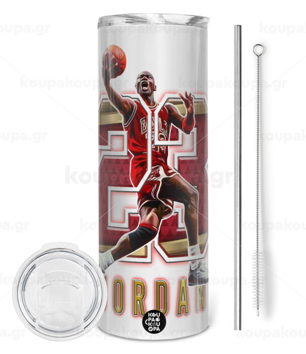 Jordan 23, Tumbler ποτήρι θερμό από ανοξείδωτο ατσάλι 600ml, με μεταλλικό καλαμάκι & βούρτσα καθαρισμού