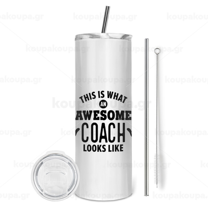 This is what an awesome COACH looks like!, Tumbler ποτήρι θερμό από ανοξείδωτο ατσάλι 600ml, με μεταλλικό καλαμάκι & βούρτσα καθαρισμού