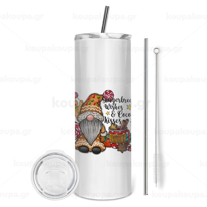 Gingerbread Wishes, Tumbler ποτήρι θερμό από ανοξείδωτο ατσάλι 600ml, με μεταλλικό καλαμάκι & βούρτσα καθαρισμού