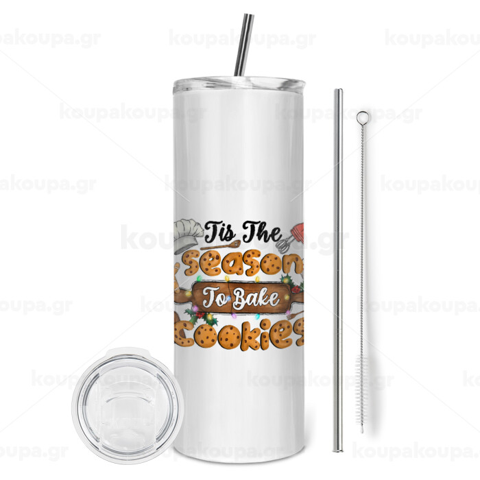 Tis The Season To Bake Cookies, Tumbler ποτήρι θερμό από ανοξείδωτο ατσάλι 600ml, με μεταλλικό καλαμάκι & βούρτσα καθαρισμού