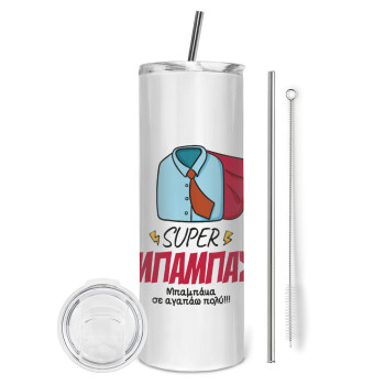 SUPER ΜΠΑΜΠΑΣ, Tumbler ποτήρι θερμό από ανοξείδωτο ατσάλι 600ml, με μεταλλικό καλαμάκι & βούρτσα καθαρισμού