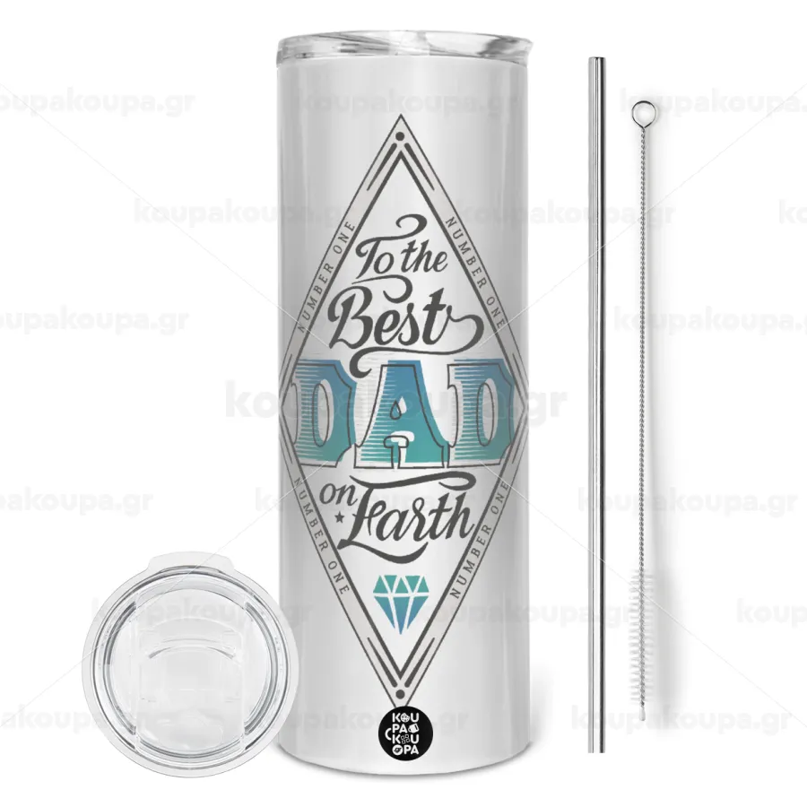 To the best DAD on earth, Tumbler ποτήρι θερμό από ανοξείδωτο ατσάλι 600ml, με μεταλλικό καλαμάκι & βούρτσα καθαρισμού