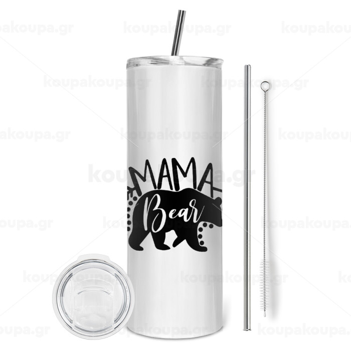 Mama Bear, Tumbler ποτήρι θερμό από ανοξείδωτο ατσάλι 600ml, με μεταλλικό καλαμάκι & βούρτσα καθαρισμού