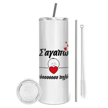 Σ΄αγαπώ τόοοοσο πολύ (Κορίτσι)!!!, Tumbler ποτήρι θερμό από ανοξείδωτο ατσάλι 600ml, με μεταλλικό καλαμάκι & βούρτσα καθαρισμού