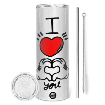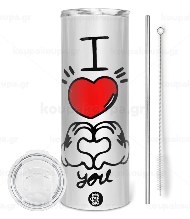comics hands love, Tumbler ποτήρι θερμό από ανοξείδωτο ατσάλι 600ml, με μεταλλικό καλαμάκι & βούρτσα καθαρισμού