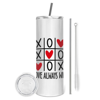 Love always win, Tumbler ποτήρι θερμό από ανοξείδωτο ατσάλι 600ml, με μεταλλικό καλαμάκι & βούρτσα καθαρισμού