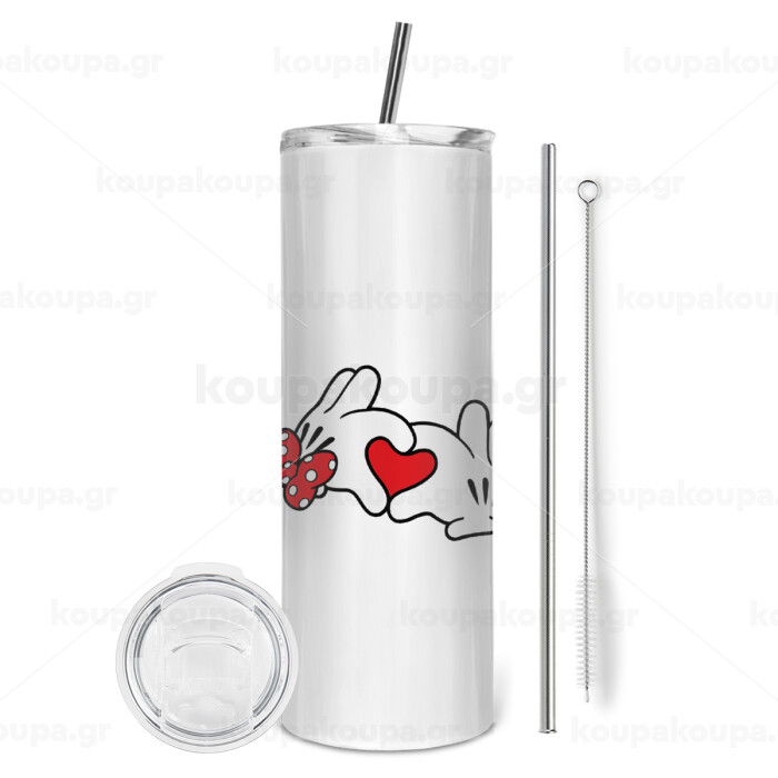 Love hands, Tumbler ποτήρι θερμό από ανοξείδωτο ατσάλι 600ml, με μεταλλικό καλαμάκι & βούρτσα καθαρισμού