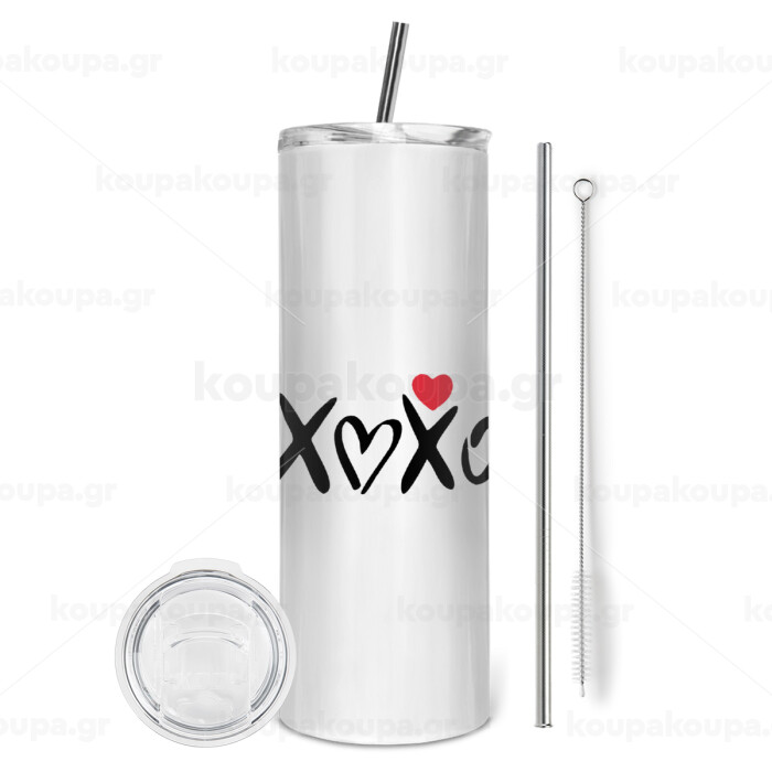 xoxo, Tumbler ποτήρι θερμό από ανοξείδωτο ατσάλι 600ml, με μεταλλικό καλαμάκι & βούρτσα καθαρισμού