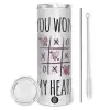 You won my heart, Tumbler ποτήρι θερμό από ανοξείδωτο ατσάλι 600ml, με μεταλλικό καλαμάκι & βούρτσα καθαρισμού
