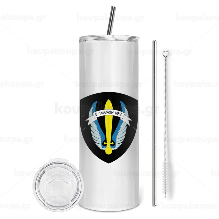 Έμβλημα Μονάδων Καταδρομών Ο Τολμων Νικα - Λοκ, Tumbler ποτήρι θερμό από ανοξείδωτο ατσάλι 600ml, με μεταλλικό καλαμάκι & βούρτσα καθαρισμού