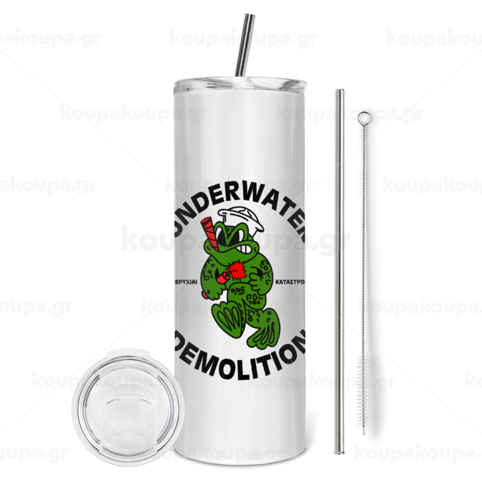 Underwater Demolition, Tumbler ποτήρι θερμό από ανοξείδωτο ατσάλι 600ml, με μεταλλικό καλαμάκι & βούρτσα καθαρισμού
