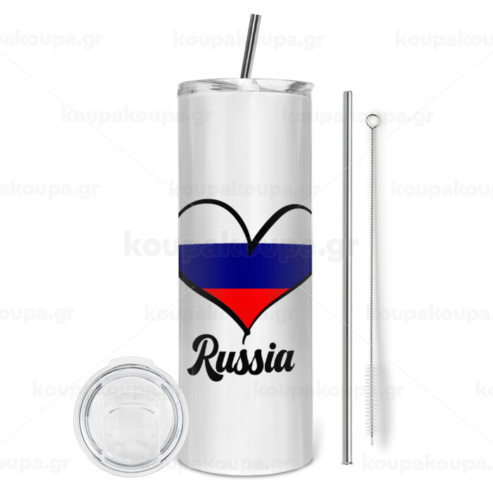 Russia flag, Tumbler ποτήρι θερμό από ανοξείδωτο ατσάλι 600ml, με μεταλλικό καλαμάκι & βούρτσα καθαρισμού
