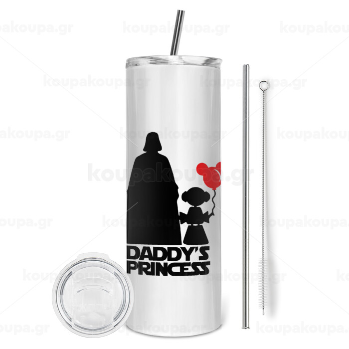 Daddy's princess, Tumbler ποτήρι θερμό από ανοξείδωτο ατσάλι 600ml, με μεταλλικό καλαμάκι & βούρτσα καθαρισμού