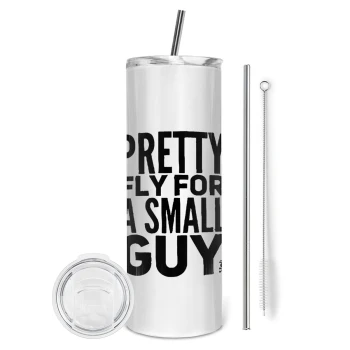 Pretty fly for a small guy, Tumbler ποτήρι θερμό από ανοξείδωτο ατσάλι 600ml, με μεταλλικό καλαμάκι & βούρτσα καθαρισμού