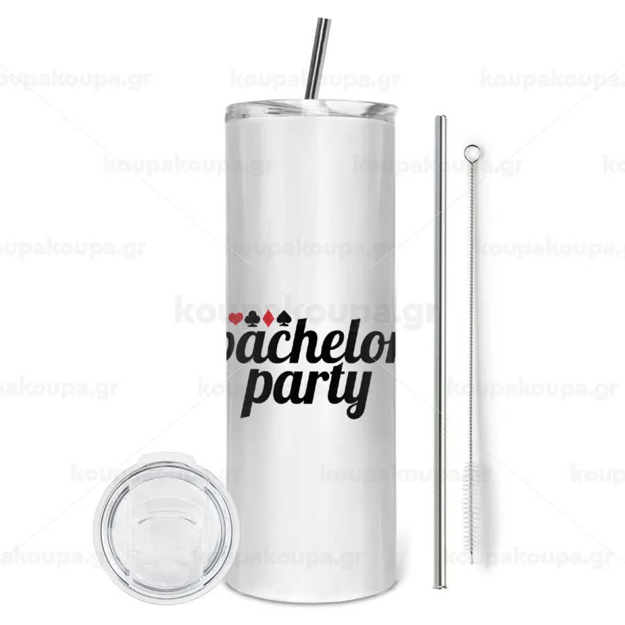Bachelor party, Tumbler ποτήρι θερμό από ανοξείδωτο ατσάλι 600ml, με μεταλλικό καλαμάκι & βούρτσα καθαρισμού