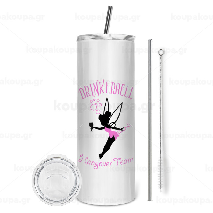 Drinkerbell bachellor, Tumbler ποτήρι θερμό από ανοξείδωτο ατσάλι 600ml, με μεταλλικό καλαμάκι & βούρτσα καθαρισμού
