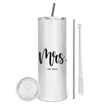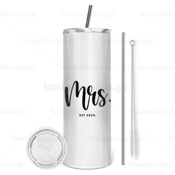 Mr & Mrs (Mrs), Tumbler ποτήρι θερμό από ανοξείδωτο ατσάλι 600ml, με μεταλλικό καλαμάκι & βούρτσα καθαρισμού