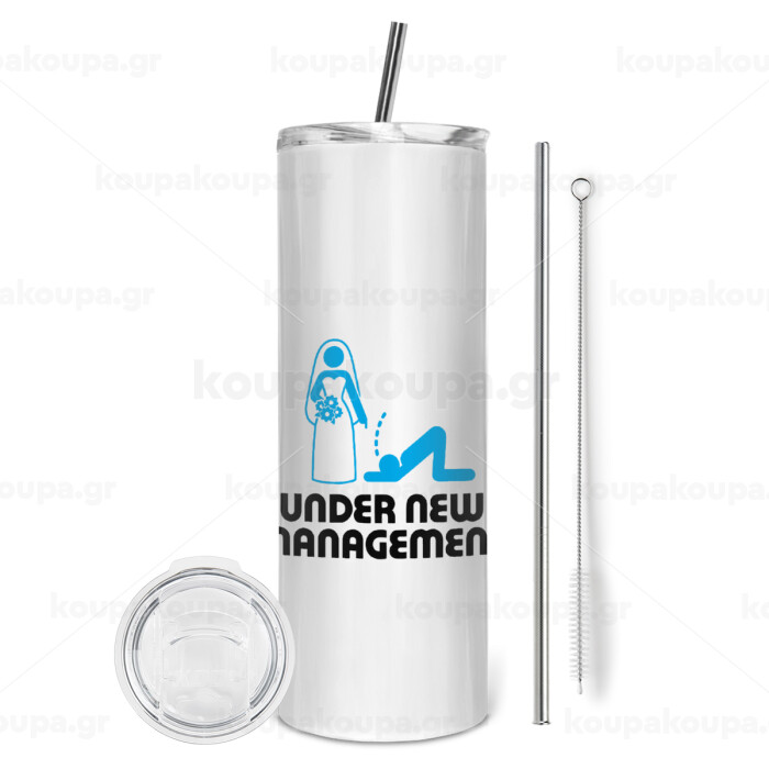Under new Management, Tumbler ποτήρι θερμό από ανοξείδωτο ατσάλι 600ml, με μεταλλικό καλαμάκι & βούρτσα καθαρισμού
