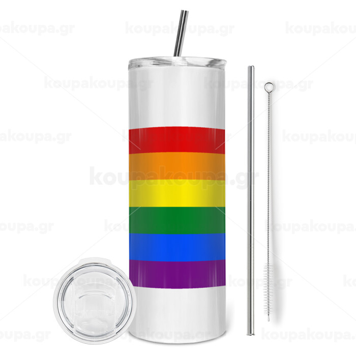 Rainbow flag (LGBT) , Tumbler ποτήρι θερμό από ανοξείδωτο ατσάλι 600ml, με μεταλλικό καλαμάκι & βούρτσα καθαρισμού