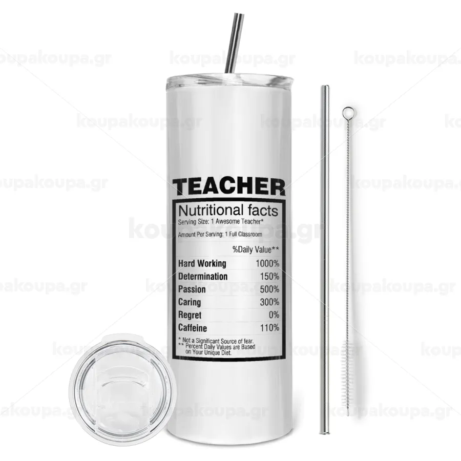 Τα συστατικά του δασκάλου, Tumbler ποτήρι θερμό από ανοξείδωτο ατσάλι 600ml, με μεταλλικό καλαμάκι & βούρτσα καθαρισμού