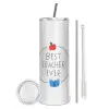 Best teacher ever, Tumbler ποτήρι θερμό από ανοξείδωτο ατσάλι 600ml, με μεταλλικό καλαμάκι & βούρτσα καθαρισμού