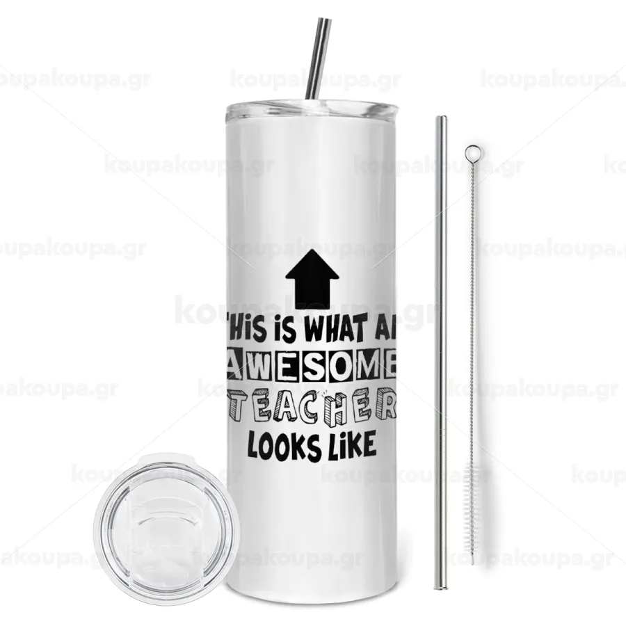 This is what an awesome teacher looks like!!! , Tumbler ποτήρι θερμό από ανοξείδωτο ατσάλι 600ml, με μεταλλικό καλαμάκι & βούρτσα καθαρισμού
