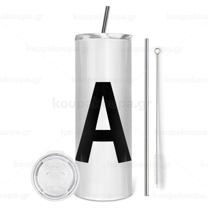 Μονόγραμμα , Tumbler ποτήρι θερμό από ανοξείδωτο ατσάλι 600ml, με μεταλλικό καλαμάκι & βούρτσα καθαρισμού