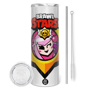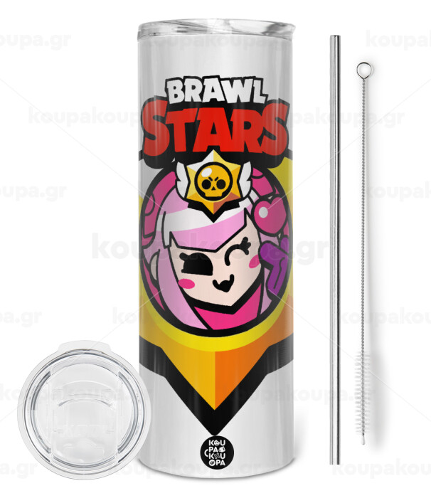 Brawl Stars Melodie, Tumbler ποτήρι θερμό από ανοξείδωτο ατσάλι 600ml, με μεταλλικό καλαμάκι & βούρτσα καθαρισμού