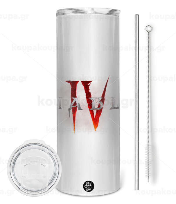 Diablo iv, Tumbler ποτήρι θερμό από ανοξείδωτο ατσάλι 600ml, με μεταλλικό καλαμάκι & βούρτσα καθαρισμού