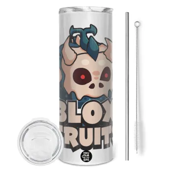 Roblox Blox Fruits, Tumbler ποτήρι θερμό από ανοξείδωτο ατσάλι 600ml, με μεταλλικό καλαμάκι & βούρτσα καθαρισμού