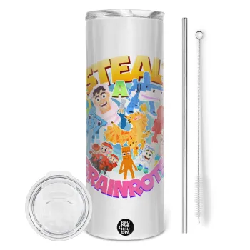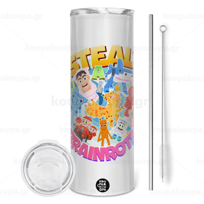Roblox Steal a Brainrot, Tumbler ποτήρι θερμό από ανοξείδωτο ατσάλι 600ml, με μεταλλικό καλαμάκι & βούρτσα καθαρισμού