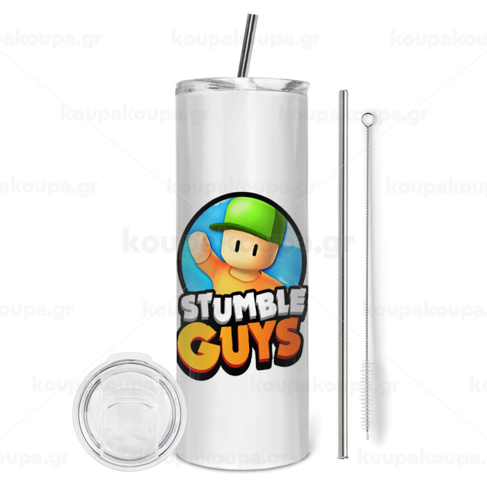 Stumble Guys, Tumbler ποτήρι θερμό από ανοξείδωτο ατσάλι 600ml, με μεταλλικό καλαμάκι & βούρτσα καθαρισμού